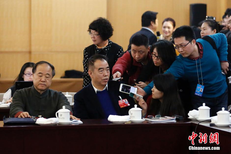 3月4日,全国政协十二届四次会议进行分组讨论。会议休息时,陈凯歌委员接受记者采访。 中新社记者 韩海丹 摄