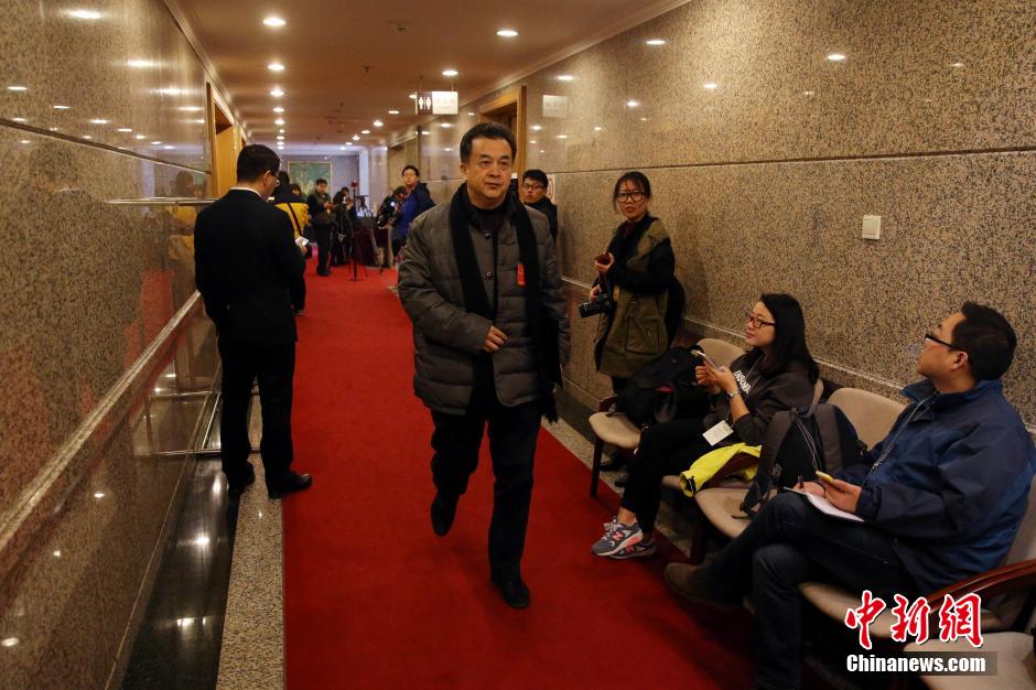 3月4日,全国政协十二届四次会议进行分组讨论。黄宏委员前往会场。 中新社记者 韩海丹 摄