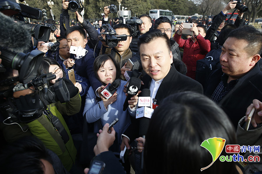 全国人大代表、央视主持人张泽群走向人民大会堂。 中国青年网记者 李拓 摄