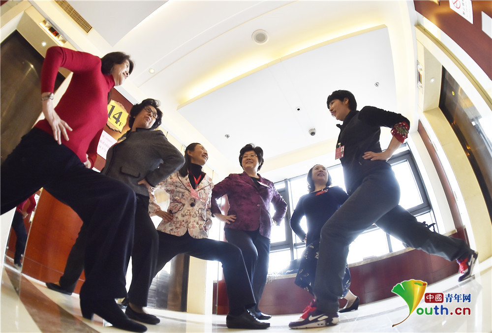 劳逸结合 委员们大跳健身操