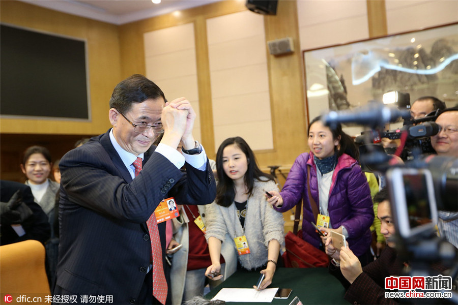 全国两会是共商国是的辩论场,也是政要们与记者面对面的“智斗会”。2016年3月5日,北京,新任证监会主席刘士余在接受媒体采访时表示,将尽己所能,忠于法律,保护股民合法权益。面对媒体“围堵”时,他说加强监管是证监会的应有之义,并表示对中国证券市场有信心,对于其他问题表示感谢,称“3月12日发布会见”。