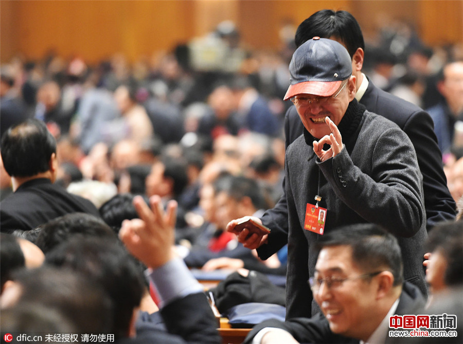 2016年3月3日,北京,全国政协委员赵本山进入会场与其他代表打招呼。