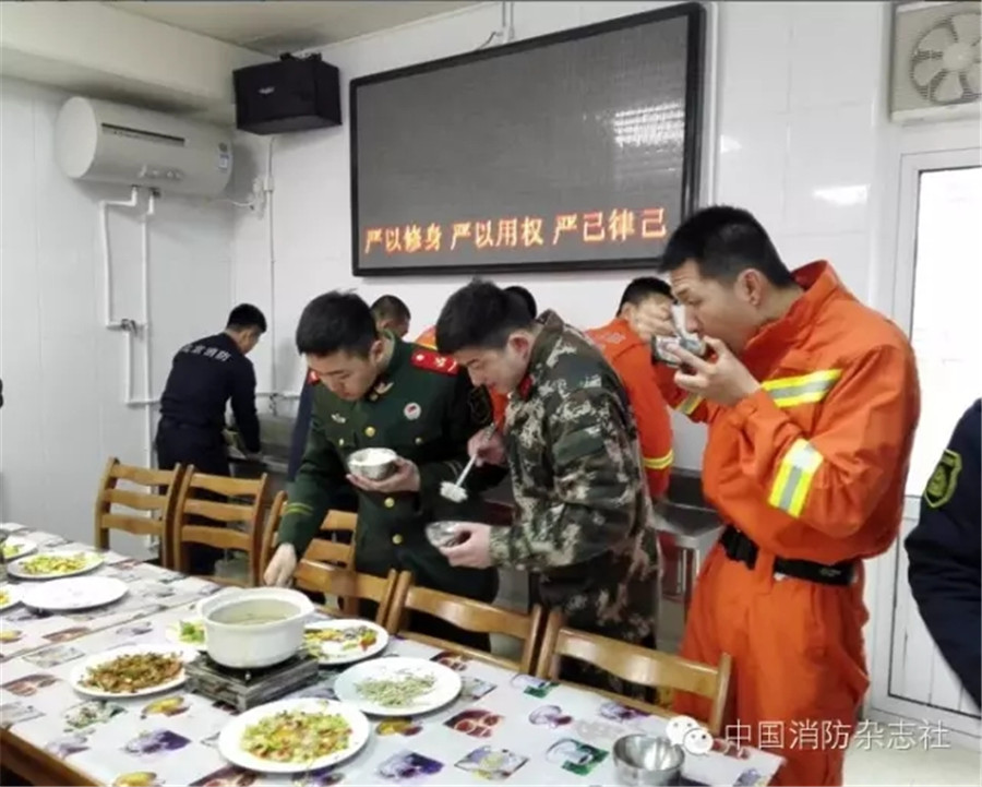 11时30分,训练结束后,战士们匆忙用餐,他们希望用最饱满的精神迎接开幕式的到来。
