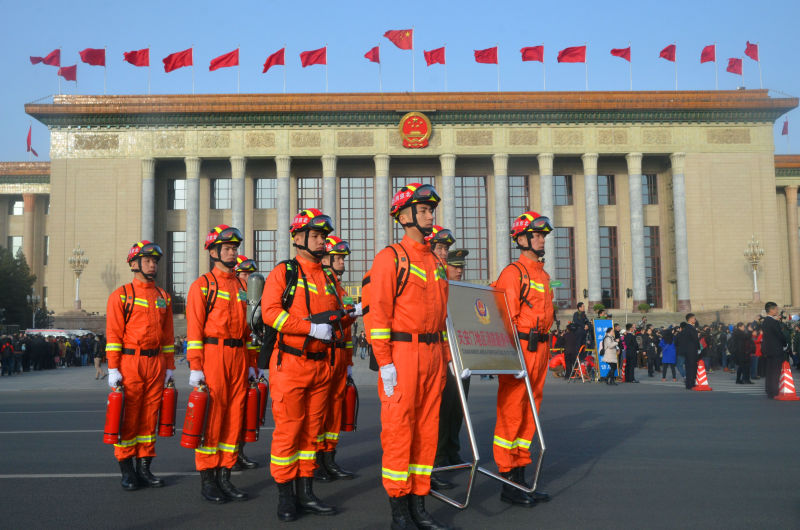 “每辆消防车对应0.5平方公里范围,在两会开始前的演练和实战中,通常是报警人的电话还没挂,我们的消防车就赶到了”焦云龙说。据了解,北京消防在涉会重要核心区域设置16处消防安保前沿指挥部,和焦云龙他们一样的前置备勤车辆有39部,他们以实战班组为单元,两会前就开展了“水源停靠一次、水带施放一次、门窗开启一次、疏散通道走一次、固定消防设施启动一次、周围情况查看一次”的“六个一”灭火调研,两会期间他们每天至少15个小时前置备勤。