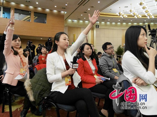 中国网记者在现场争取提问机会