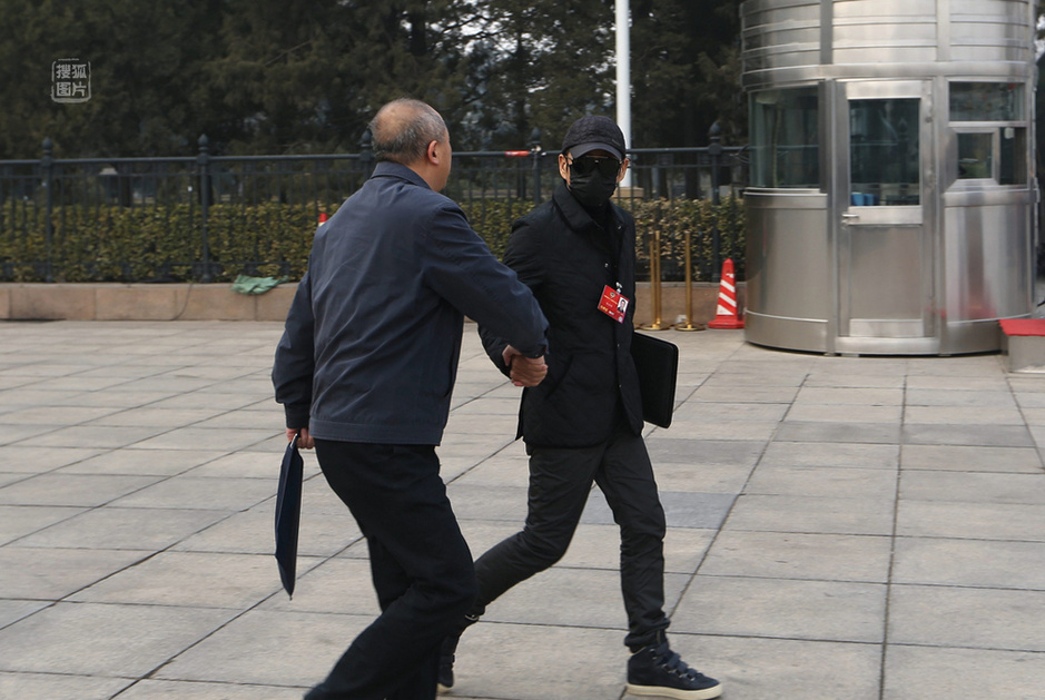 围观明星委员,是许多跑两会的记者工作之余最有兴趣的活动之一,不过这一规律似乎也被明星们掌握了。2016年3月3日,全国政协会议开幕式结束后,陈道明穿着黑衣黑裤,戴着黑口罩,全副武装匆匆离场。 不过在路上,还是被同行的人给认了出来。