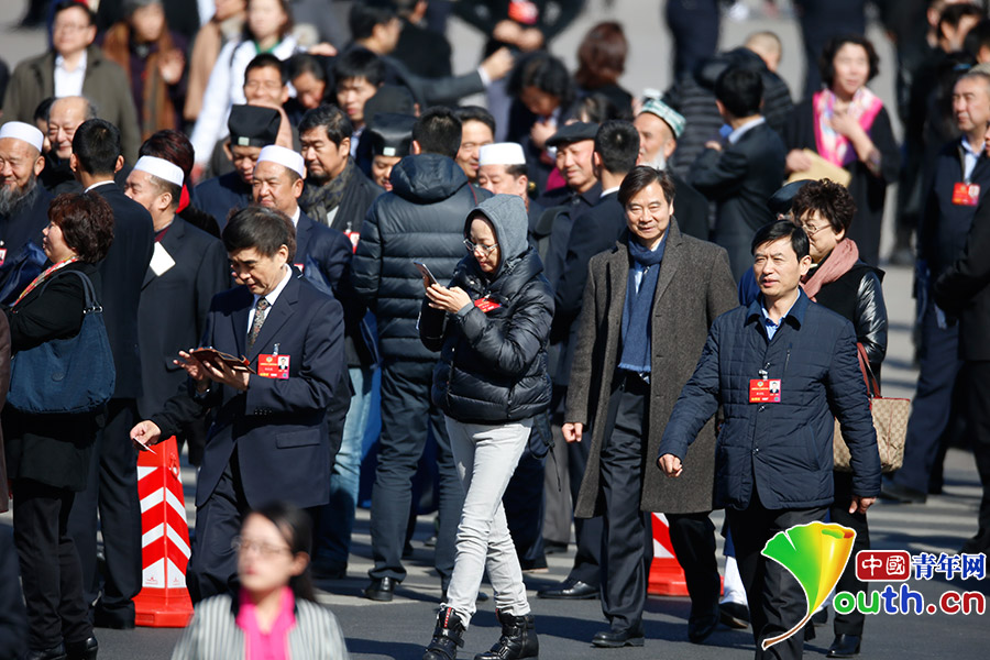 两会花絮:政协委员鱼贯而入大会堂 宋丹丹疑首现身
