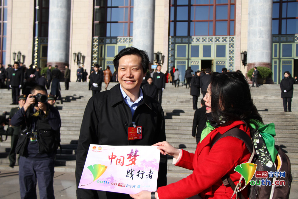 全国人大代表、小米科技创始人雷军点赞中国梦践行者。中国青年网记者 李延兵 摄