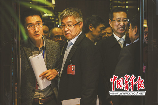 3月5日,北京昆泰酒店,全国政协委员张懿宸(左二)和全国政协委员、央视原台长胡占凡(右二)。