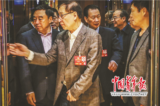 3月4日,北京昆泰酒店,全国政协委员、壹基金理事长马蔚华(左一)和全国政协委员、银监会原主席刘明康(左二)。