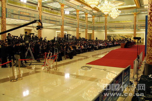 早早赶到金色大厅占据有利地形的记者们惊喜地发现,与往年相比,今年的总理记者会现场有三大变化。