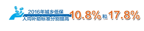 2016年,我国城市和农村低保(简称城乡低保)平均标准分别同比提高10.8%和17.8%,超额完成了年初制定的城乡低保人均补助标准分别提高5%和8%的目标任务。