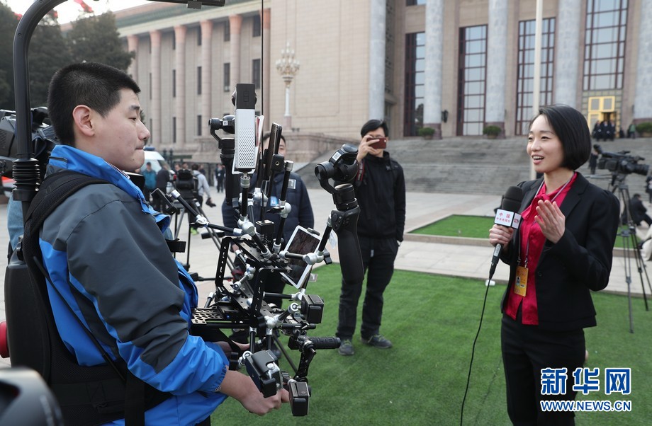 3月3日,中国人民政治协商会议第十二届全国委员会第五次会议在北京人民大会堂开幕。图为当天在大会堂东门外采访的各路记者。新华网发(王超摄)