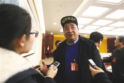 3月5日,北京会议中心,全国政协委员姜昆接受记者采访时表示,讽刺艺术是相声的一种功能,要继续发扬,但需要把握讽刺的“度”。新京报记者侯少卿 摄