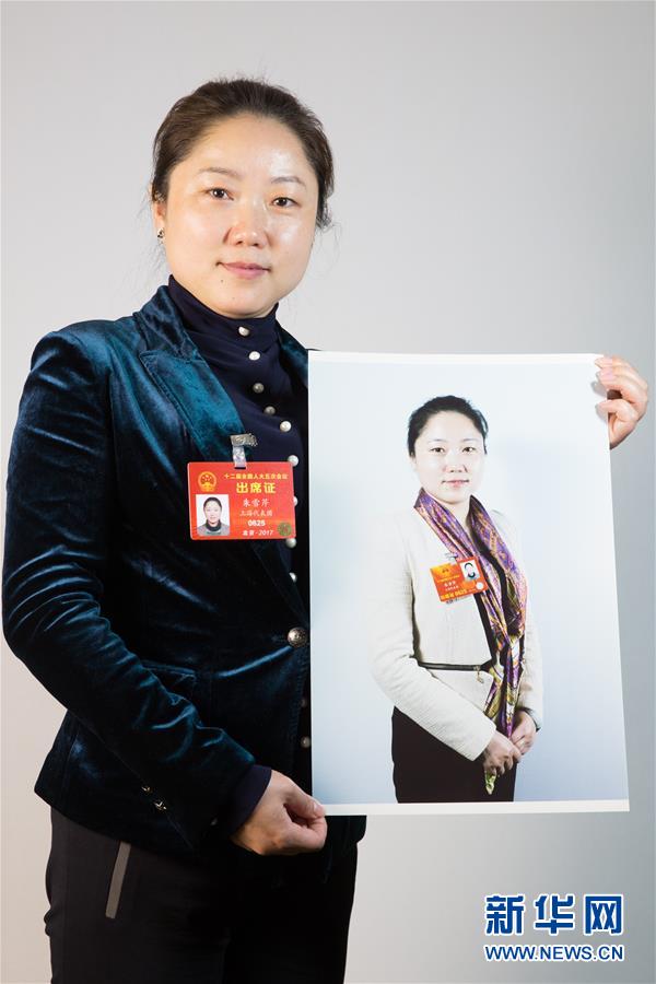 2017年,十二届全国人大五次会议在北京召开。记者重访9名农民工代表,请他们和四年前的“自己”合影,讲述履职故事和感受。朱雪芹,十一届、十二届全国人大代表、上海市总工会副主席、上海华日服装有限公司工会主席、销售主管。从一个踩缝纫机的普通女工成为两届全国人大代表,履职路上,看到自己的建议得到落实,朱雪芹觉得很欣慰。新华社记者金立旺 摄