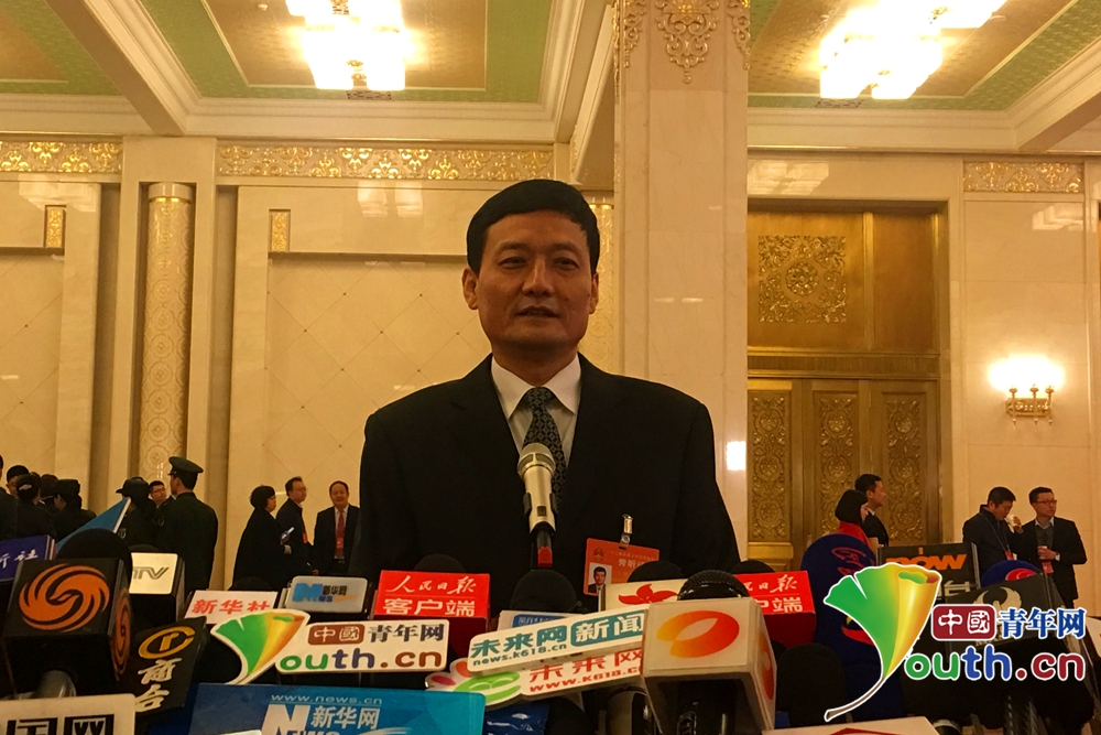 3月12日上午,第十二届全国人民代表大会第五次会议在人民大会堂举行第三次全体会议。会前,国务院国有资产监督管理委员会主任肖亚庆在“部长通道”接受记者采访。中国青年网记者郭蕾 摄