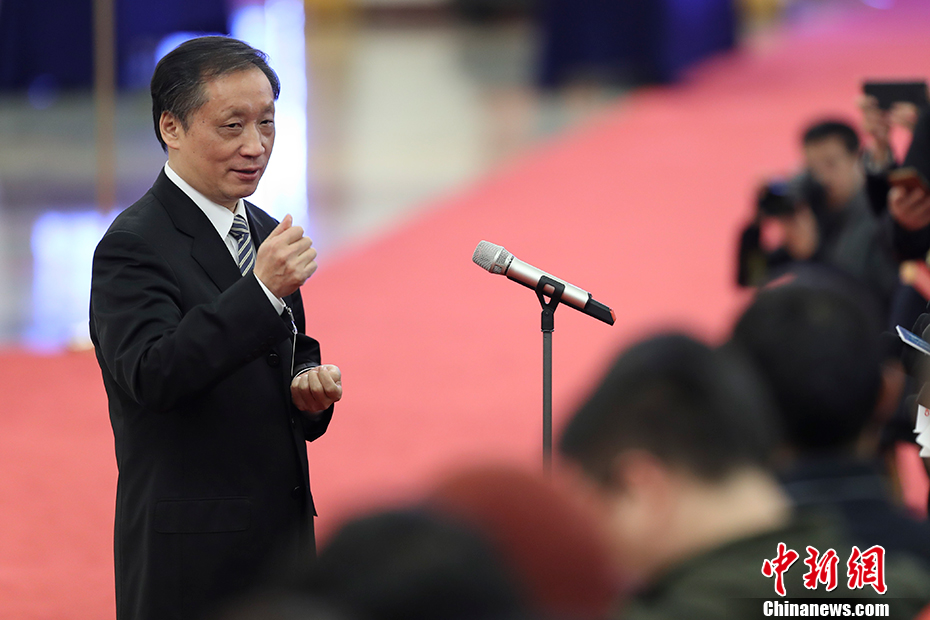 3月12日,十二届全国人大五次会议在北京人民大会堂举行第三次全体会议,国家旅游局局长李金早在“部长通道”接受采访。
