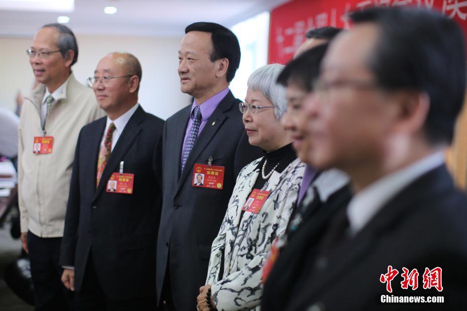3月12日,十二届全国人大五次会议澳门代表团举行全体会议,审议民法总则(草案)修改稿等和“两高”工作报告。图为代表们合影。中新社记者 泱波 摄