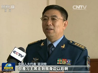 全国人大代表苗润奇:刚开始确实还是有点紧张的,但是习主席走到我身边以后啊,我感到特别亲切、特别温暖,习主席问了我们学院的情况和我工作的情况,我如实进行了回答。回去以后我们要按照习主席的要求,把科技兴军的思想贯彻落实好,让学习科技、运用科技蔚然成风。