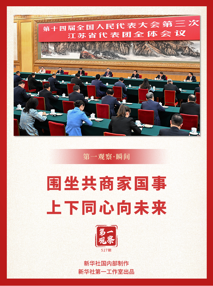 人民大会堂东大厅灯光璀璨,暖意融融。回字形的会议桌旁,代表们踊跃发言,总书记用心倾听。
