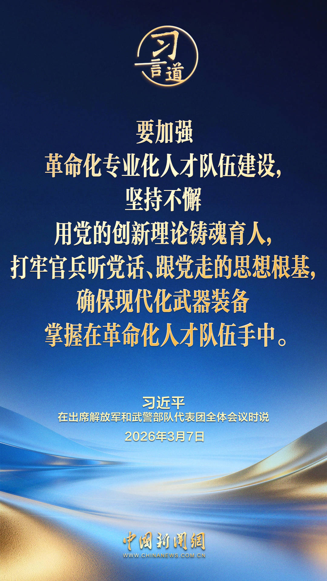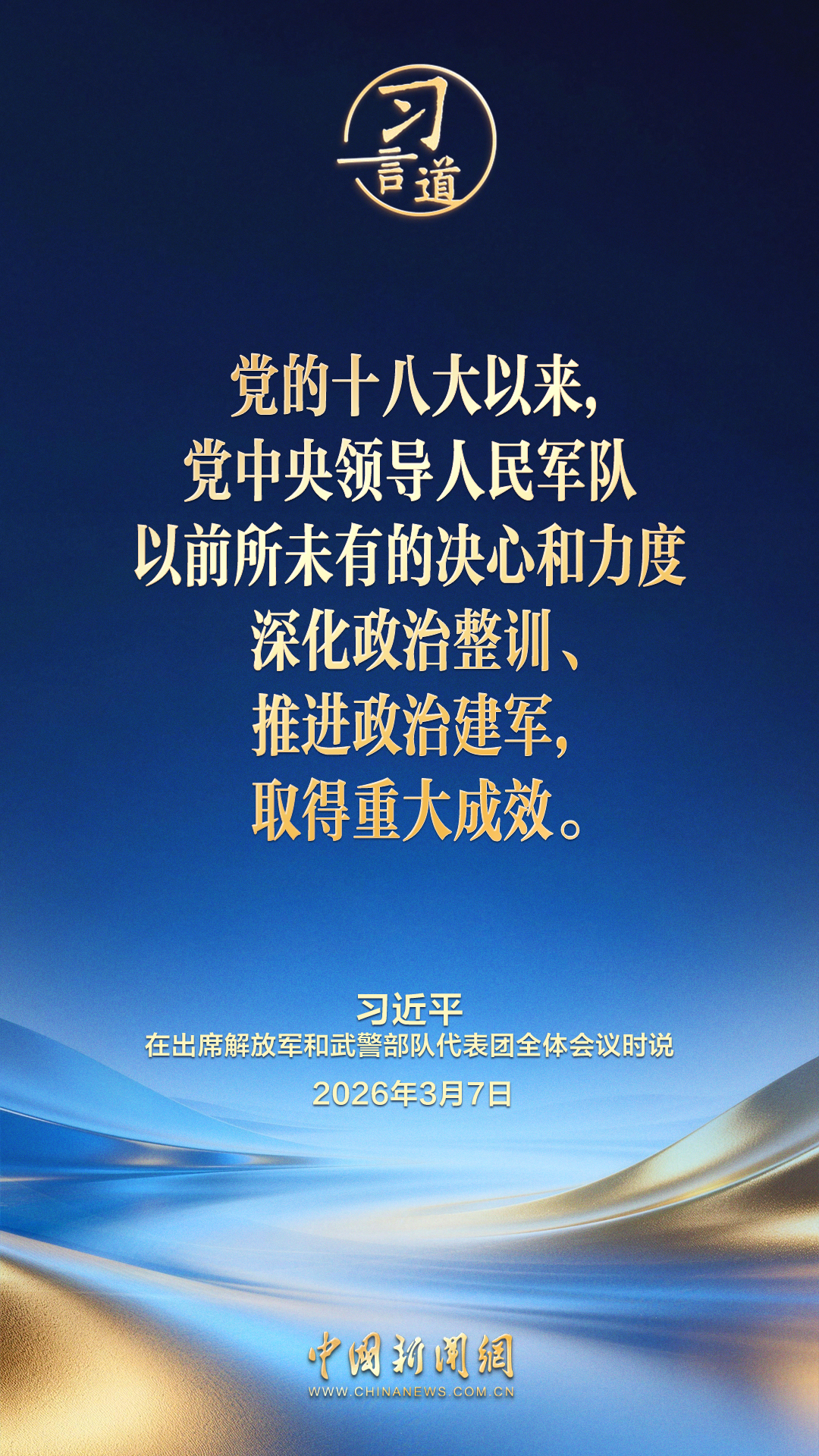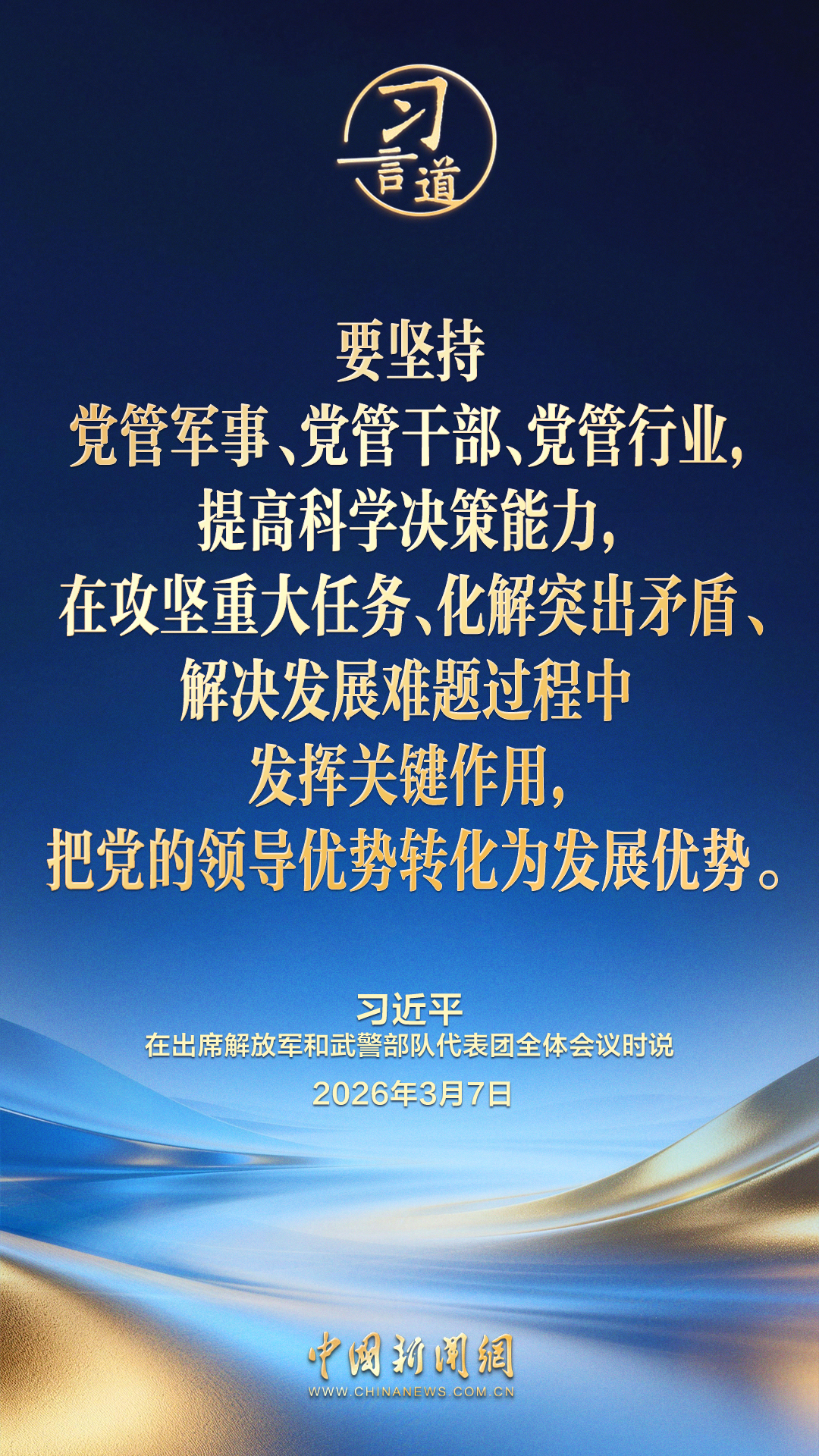 3月7日,中共中央总书记、国家主席、中央军委主席习近平出席十四届全国人大四次会议解放军和武警部队代表团全体会议。他指出——