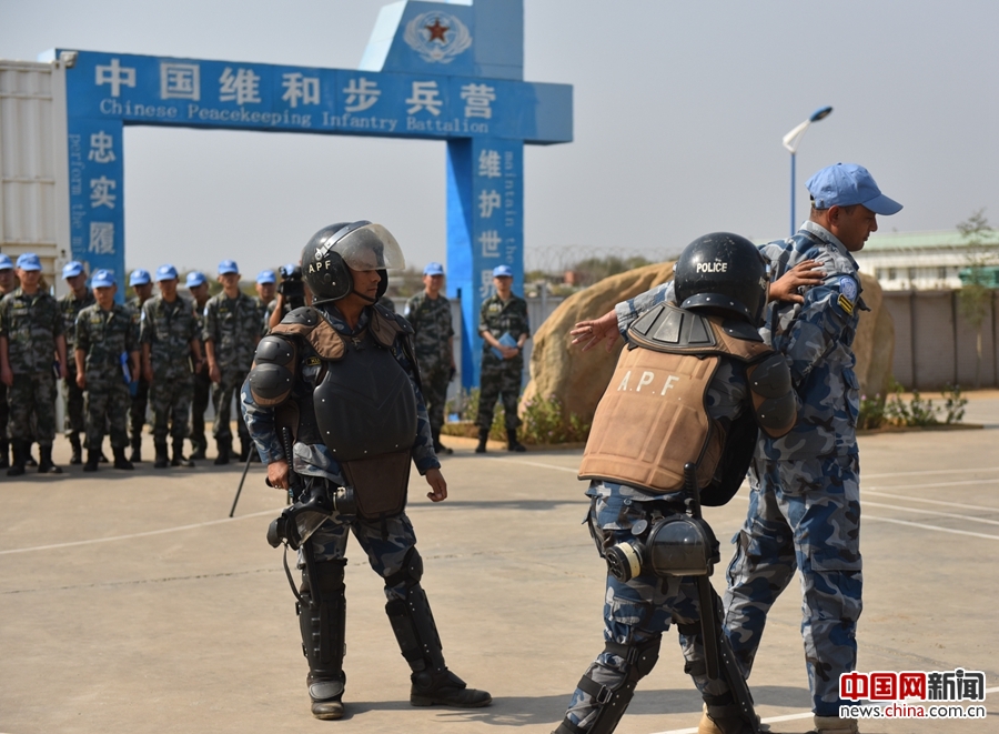 尼泊尔防暴队正在进行科目演示。李赞 摄