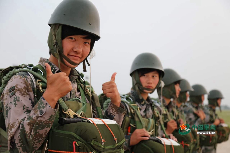 进行跳伞训练的李婷(左一)。刘鹏 摄
