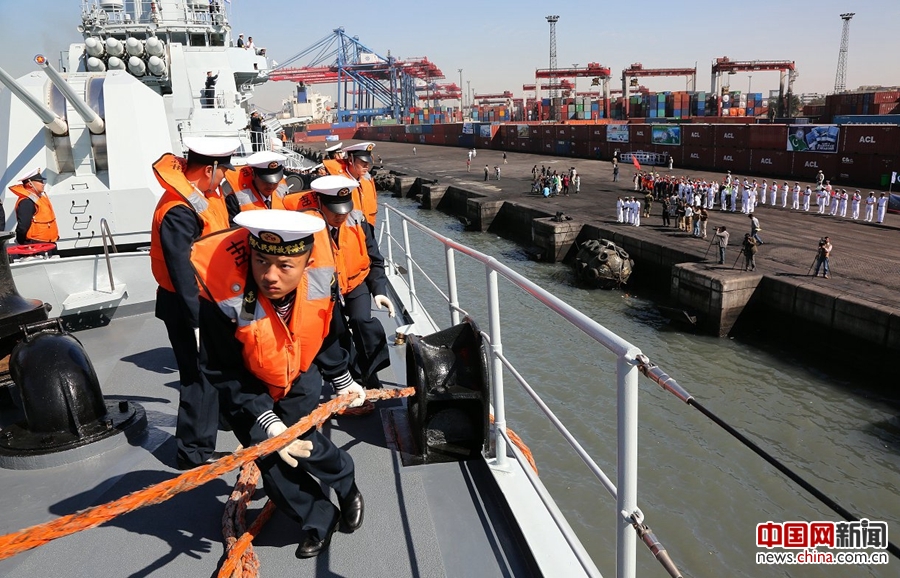 参加“和平-17”多国海上联合演习的中国海军第二十四批护航编队驶入巴基斯坦卡拉奇港。王长松 摄