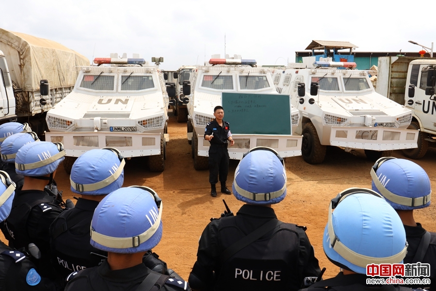 中国第四支驻利比里亚维和警察防暴队一级医院医护人员深入执勤分队开展针对性教育。李金良 摄