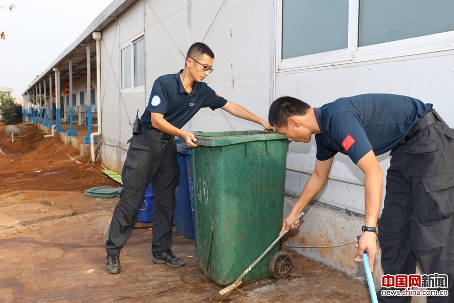 2月6日,中国四支驻利比里亚维和警察防暴队队员正在清扫垃圾,确保营区干净卫生。郑志刚 摄
