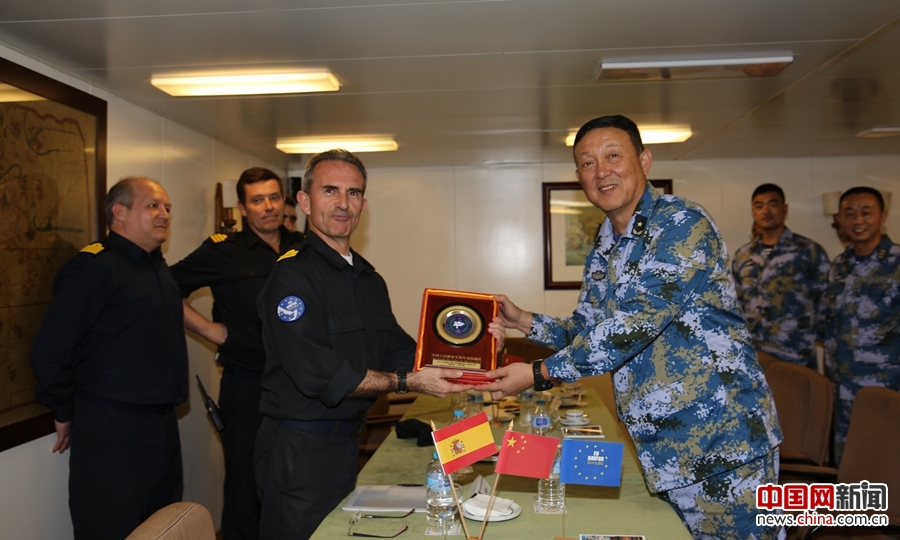 中国海军第25批护航编队指挥员与欧盟465编队指挥官会面