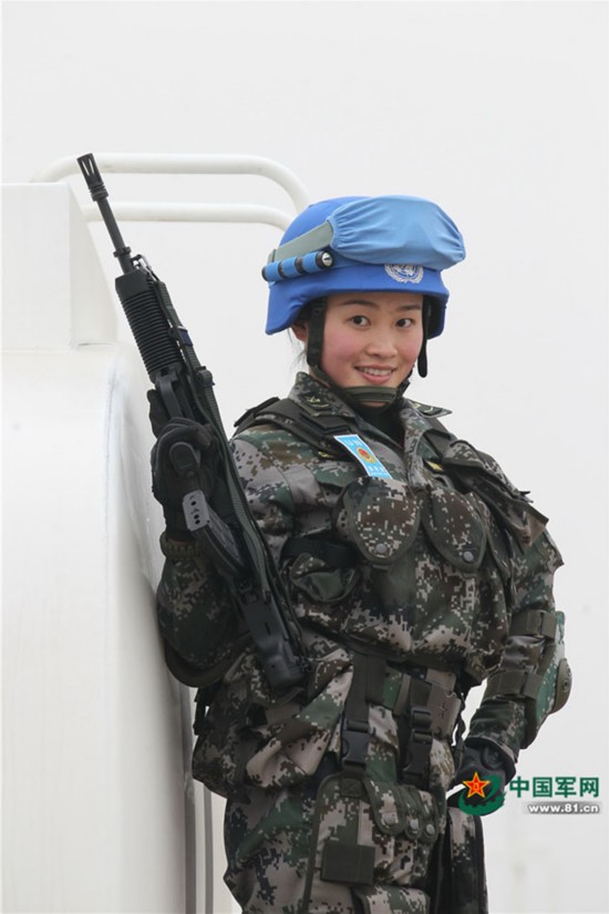 参加中国首支维和步兵营女子步兵班的张媛媛。