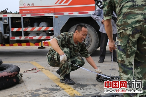 孟祥江在对量链条进行测量。杨海松 摄