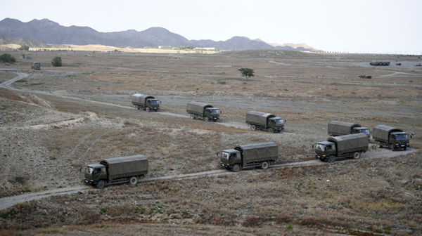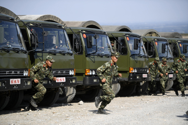 武警宁夏总队新训驾驶员在贺兰山下进行野外课目训练(6月8日摄)。