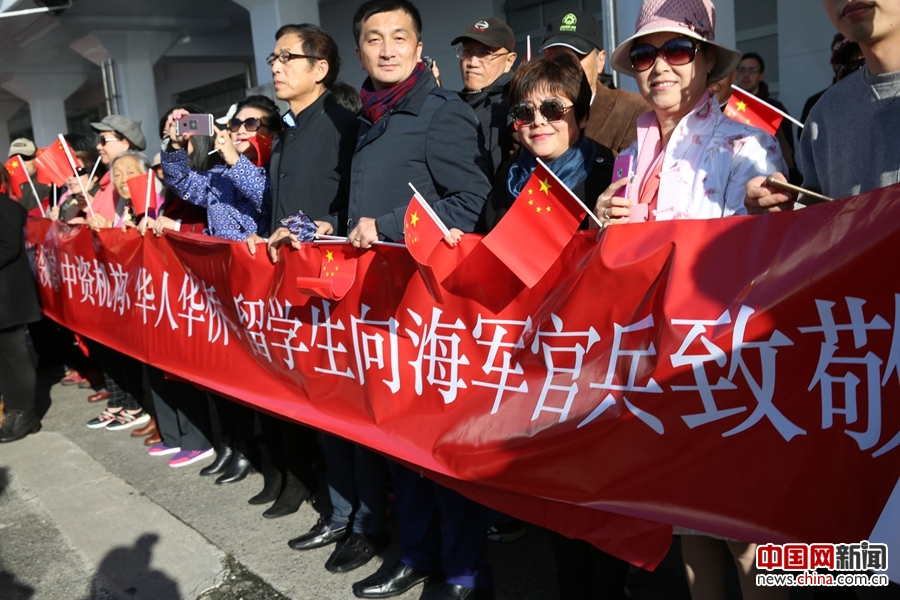 华人华侨和留学生代表欢迎编队到访。黎友陶 摄