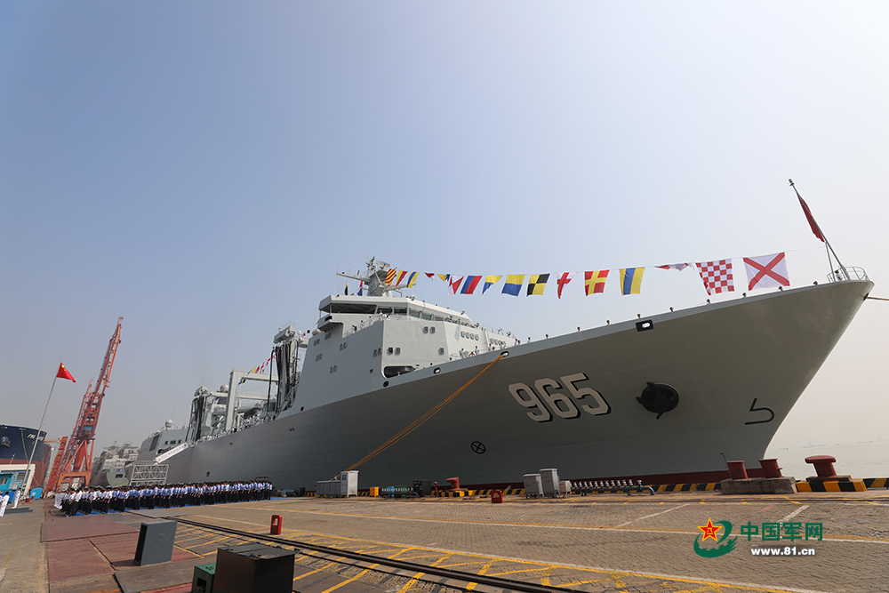 呼伦湖舰舷号965,是我国自主研制具有世界先进水平的新型综合补给舰,可为我海军航母编队、远海机动编队提供海上伴随补给。该舰突破了新型海上补给装置研制、大型补给舰总体设计建造等一系列关键技术,补给方式多样、补给能力强。该舰的入列为海军舰艇走向深蓝奠定了更加坚实的装备基础,标志着海军远洋保障能力跃上新台阶,对于完善海军装备体系结构、建设强大的现代化海军、实现中国梦强军梦具有重要意义。
