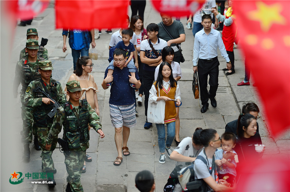 武警重庆总队一支队七中队在重庆沙坪坝区古镇景区巡逻。张春华 摄