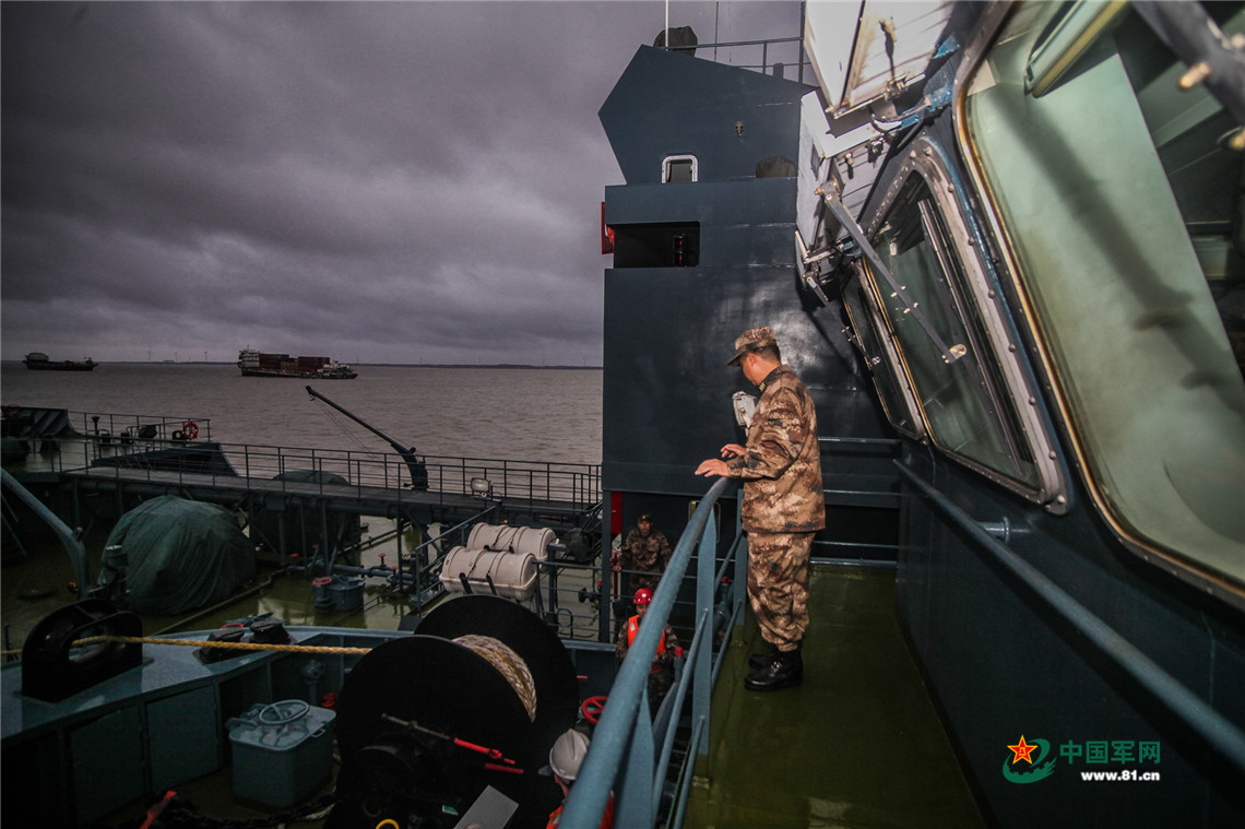 在聊天中知道,小伙子家就在上海,这次航行训练,想不到与家擦肩而过。看着两岸的建筑物不断地飞过眼前,小伙子高兴地说:“第一次在船上看上海,这感觉倍爽!就是不能穿军装拍照,不然一定拍一张发给我家里人!让他们高兴一下。”
