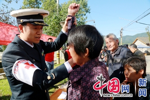 车刚开进村里,排队等候的村民纷纷自发起身鼓掌,用他们淳朴的方式欢迎亲人的到来。定期到村里为村民义诊、体检,是医院的常规动作,上门服务送健康活动年年都开展,村民们早已把上门为自己看病的军医当亲人。