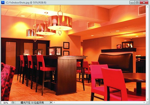 这是一幅在旅馆会议室拍摄的照片,当然,其灯光是典型的会议室(和家庭)灯光,这种灯光被摄影师和销售人员称作白炽灯,这就是照片内的颜色如此黄的原因(在室内把白平衡设置为自动时所拍摄的典型照片)。第一种方法是添加蓝色照片滤镜调整,补偿黄色,使颜色看起来更自然,因此请单击调整面板内的照片滤镜图标(如图所示)。