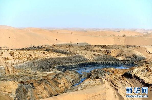 甘肃武威境内腾格里沙漠一处排污池,污染物由暗管直接排放至沙漠。新华社记者 陈斌 摄