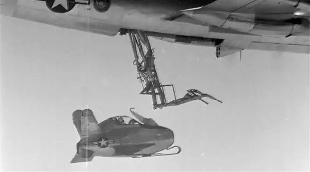 作为B36挂载的寄生战斗机,XF-85由载机机腹下的伸缩吊杆投放和回收。