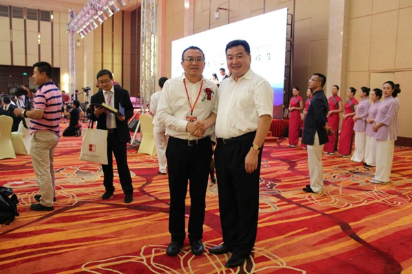 报告会间歇,武玉杰董事长与东方出版社社长、总编辑许剑秋,山东盛和塾理事长刘芳,银川盛和塾理事长、美酒汇董事长张劲松等参会企业家交流学习。
