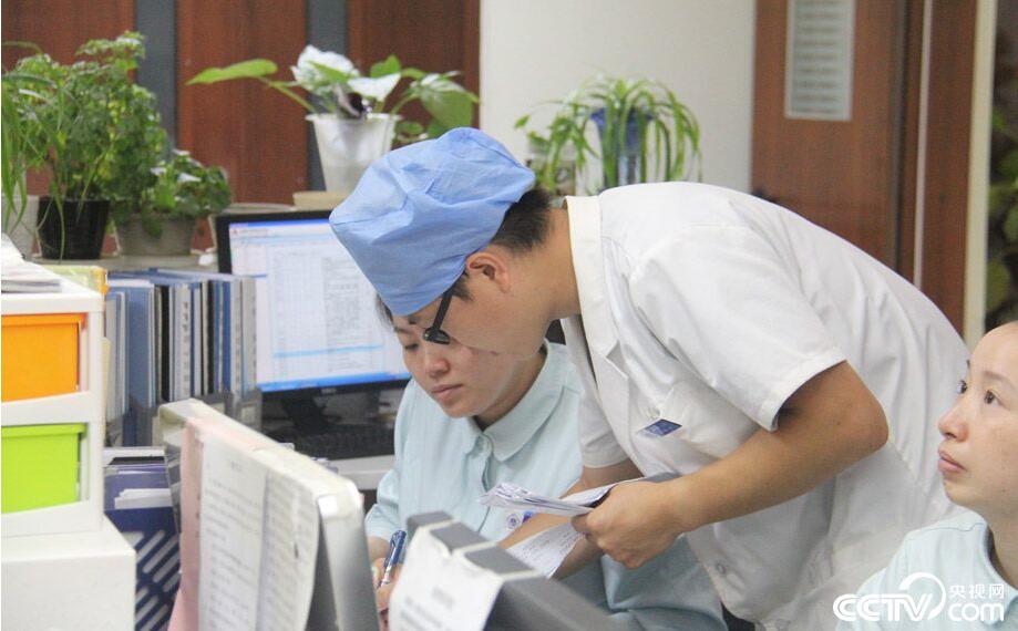 为患者安排好病房,王学举来到住院部护士站更新病例。已接近中午十二点,王学举忙完手头的工作准备下“晚班”。(王煌 摄)