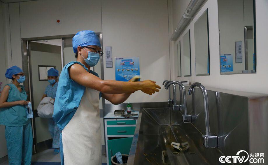 进产房前的清洁工作,认真对待每一个细节。(王煌 摄)