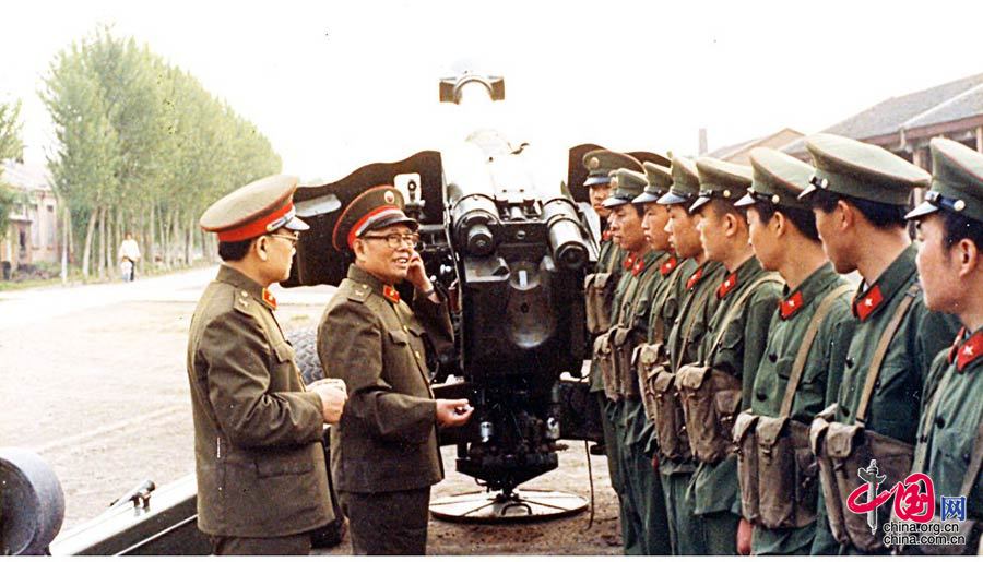 1965年,专家为炮兵讲解65型耳塞的使用方法。苑正轩 摄