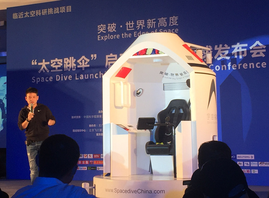用于实现太空跳伞项目的“黄龙号”太空舱,是由宇宙探索公司和北交大本质空间设计研究院联合设计,名字寓意为新一代炎黄子孙的黄皮肤龙之传人。它的骨架材料是铬钼钢,外围是玻璃纤维和环氧漆与防火涂料;其耐寒和轻便适用于汽车和航空航天工业,舱内包含有地面通信系统、半增压系统、保温系统、回收系统、信号直播五大系统,兼顾挑战者生命安全和采集等多重功能。