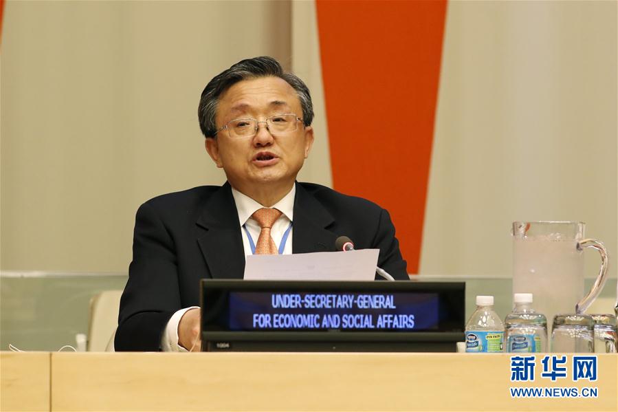8月9日,在位于纽约的联合国总部,联合国负责经济和社会事务的副秘书长刘振民在庆祝世界土著人民国际日活动上发言。