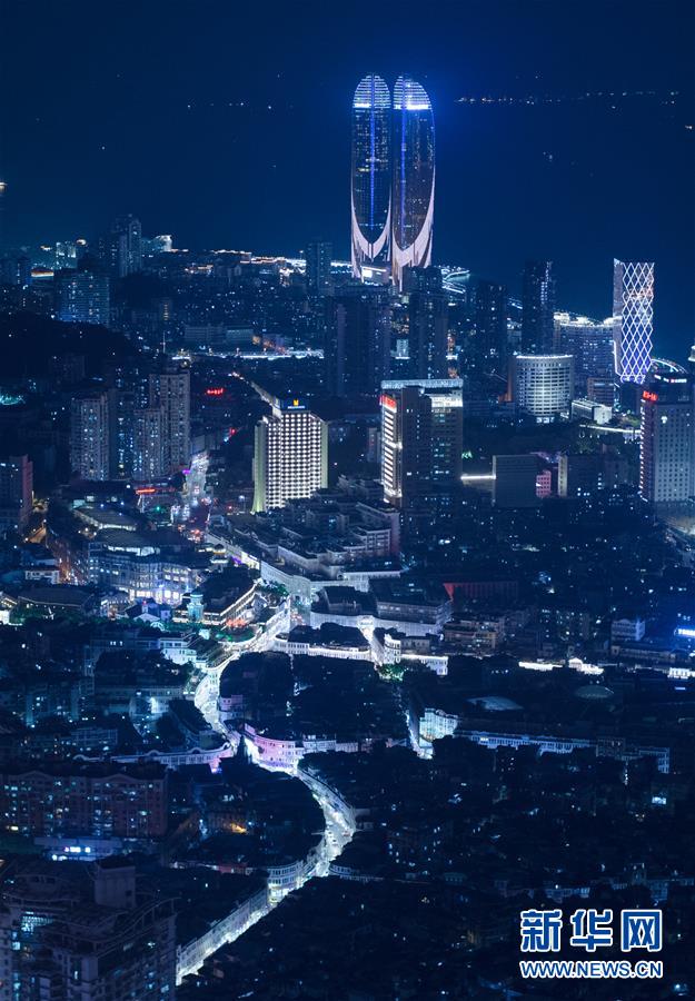 厦门思明北路传统商业街至世贸海峡大厦双子塔沿线夜景(8月3日摄)。 新华社记者 姜克红 摄 图片来源:新华网