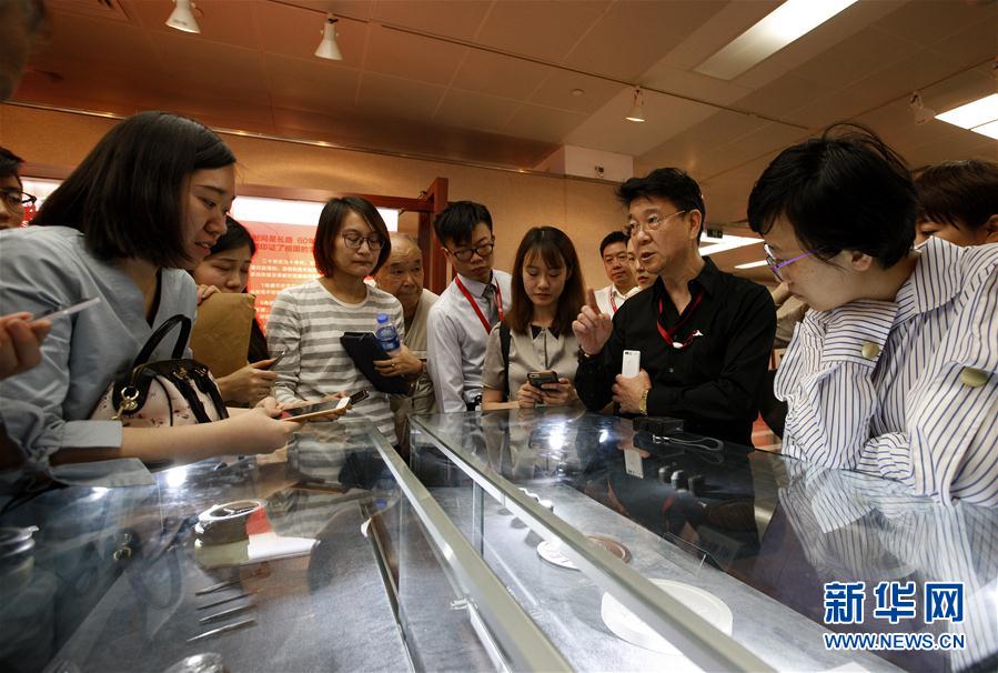 10月9日,中国印钞造币总公司正高级工艺美术师罗永辉(右二)在展览现场向观众讲解硬币模具的制作工艺。近日,由中国人民银行货币金银局主办、中国印钞造币总公司承办的“国币之尊艺术之美”——人民币硬币发行60周年全国巡展在上海图书馆举行,展示了自1957年12月1日正式发行人民币硬币起,已经发行的4套流通硬币、96个品种108枚普通纪念币和2000余种贵金属纪念币。新华社记者方喆 摄
